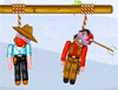 Die armen Kerle in diesem Spiel sind zu unrecht verurteilt worden und sollen nun gehängt werden. Du bist ein Freund von ihnen und eilst ihnen zur Hilfe. Die Männer haben bereits die Schlinge um den Hals und werden jeden Moment gehängt. Du stehst im Spielfeld und musst versuchen die Stricke der Männer mit einem gezielten Schuss zu durchtrennen, sodass ihnen nichts zustoßen kann. Achte immer darauf gut zu zielen, denn Du hast nur wenige Schüsse zur Verfügung und wenn Du versagst, müssen die Männer leider sterben. Du steuerst das Spiel mit der Maus. Mit ihr kannst Du die Richtung und die Kraft Deines Schusses bestimmen und den Männern das Leben retten.