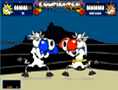 Willkommen zu einem Boxkampf der besonderen Art! Diese Kühe sind wirklich ein wenig verrückt, sie haben keine Lust nur langweilig auf ihrer Wiese herumzustehen und Gras zu fressen. Deshalb treten sie gegeneinander zum Kampf an und Du bist mittendrin. Versuche alle Deine Gegner auszuschalten und werde der Boxkönig auf der grünen Wiese. Ziel ist es den Highscore zu knacken, also auf in den Kampf. Du hast normale Schläge zu Verfügung, mit einer Power Kombination, kannst Du eine Extraprortion Kraft in Deine Schläge legen, um Deine Gegner zu besiegen. Schlage Deine Gegner mit den Tasten M, O und K. Wenn Du geschickt genug bist die Tasten A, S und D gleichzeigtig zu drücken aktivierst Du die Power Kombination. Mit der Leertaste kannst Du Dich verteidigen.
